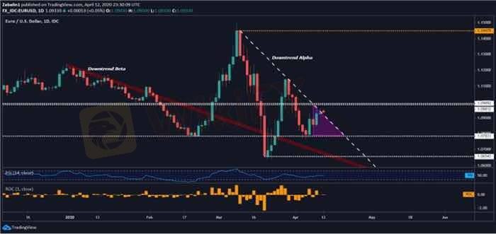 EUR/USD has broken above resistance labelled as “Downtrend Alpha” and out of the compression zone. However, the victory for Euro bulls may be short-lived as the pair mounts to challenge former support-turned-resistance between 1.0981 and 1.0989. If EUR/USD capitulates, it may instill a sense of discouragement and pressure the pair to retesting support at 1.0783.