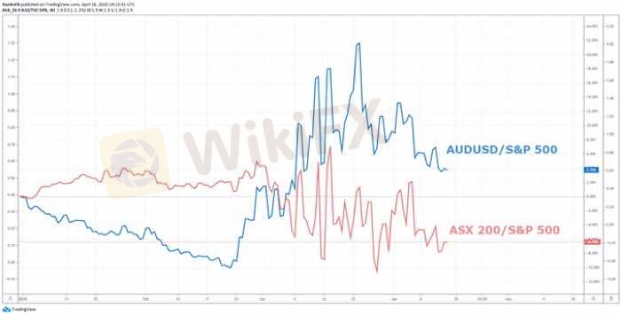Evidenced in the chart below, the Australian Dollar has considerably outperformed the ASX 200 relative to one of the other leading risk assets, the S&P 500. Using the US index as a benchmark, we can see not only the divergence between the two Australian assets, but also the formidable strength of the S&P 500 which has outperformed both AUD/USD and the ASX 200 since mid-March.