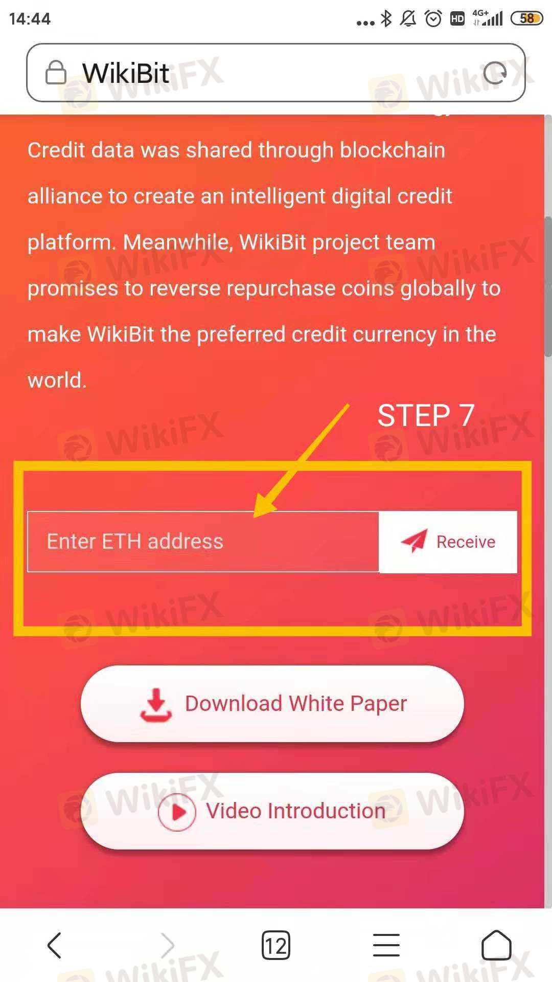 verification code with your phone number on WikiBit webiste, please try with your