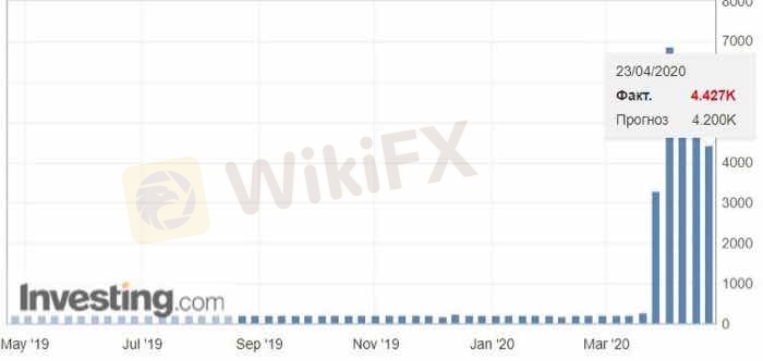 🇺🇸 Число первичных заявок на получение пособий по безработице (США) актуальный - 4,4 млн. заявок, прогноз - 4,2 млн. заявок, пред значение – 5,2 млн. заявок.