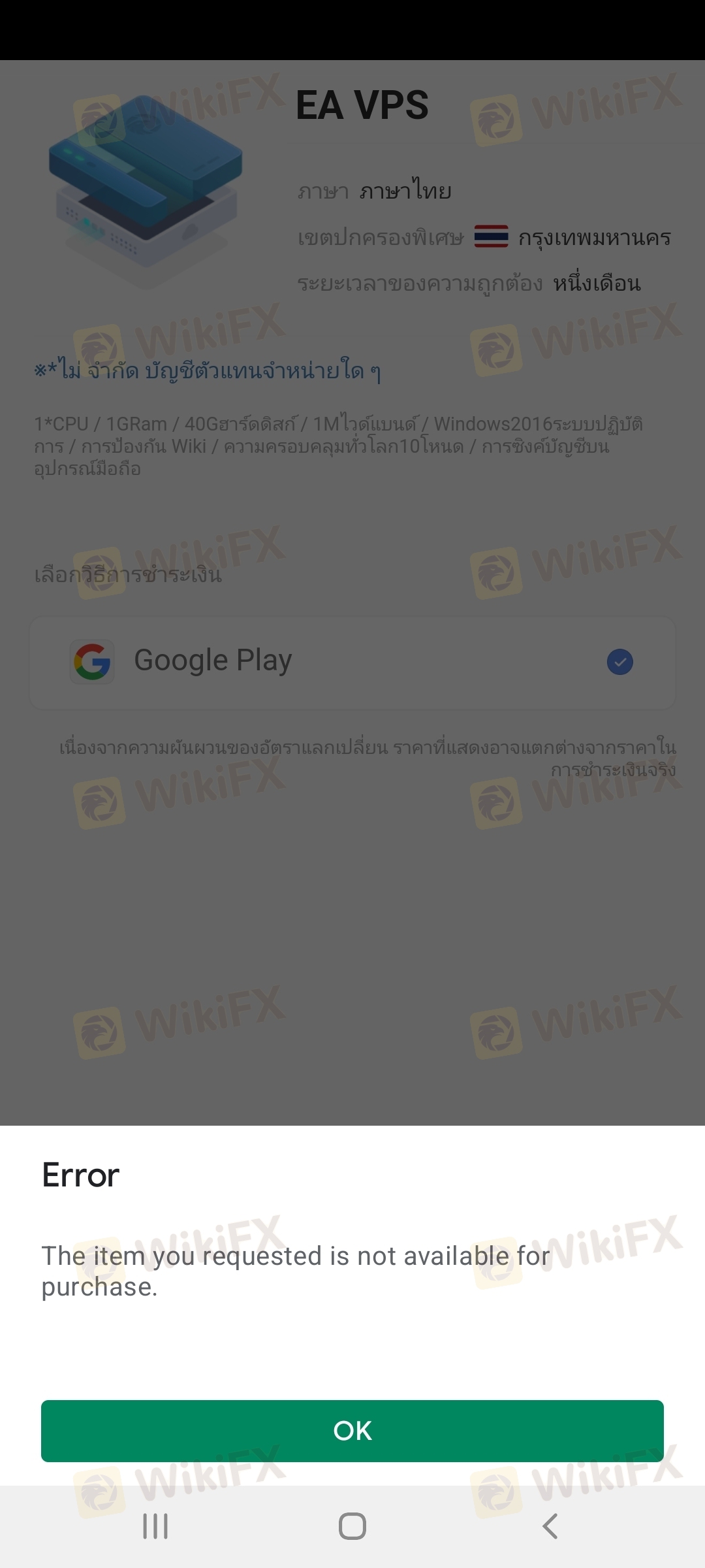 ช่องทางการจ่ายเงินชำระ vps ไม่ได้ด้วย google play