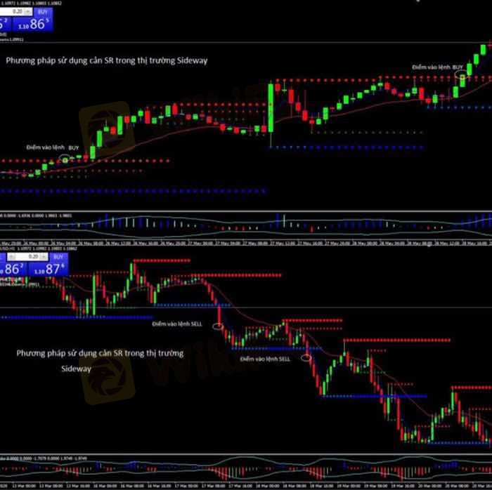 Chia sẻ vs ae 1 phương pháp mình đang dùng khá hiệu quả. Đánh trong Sideway vùng giá hẹp sử dụng cản cứng SR. Nến phá cản,đóng nến bên ngoài cản hết H1 đánh theo Trend. Trung bình ăn 20-100pip