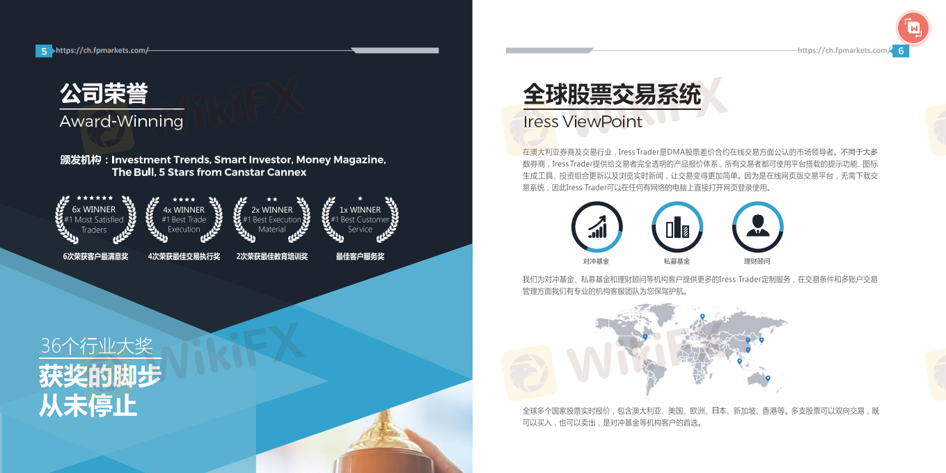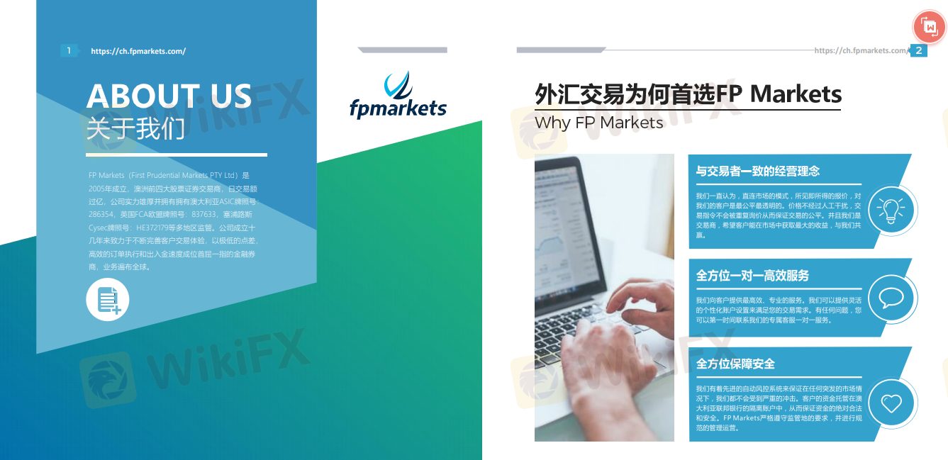 FP Markets(First Prudential Markets PTY Ltd)是2005年成立,澳洲前四大股票证券交易商,日交易额过亿,公司实力雄厚并拥有拥有澳大利亚ASIC牌照号:286354,英国FCA欧盟牌照号:837633,塞浦路斯Cysec牌照号:HE372179等多地区监管。公司成立十几年来致力于不断完善客户交易体验,以极低的点差,高效的订单执行和出入金速度成位首屈一指的金融券商,业务遍布全球。