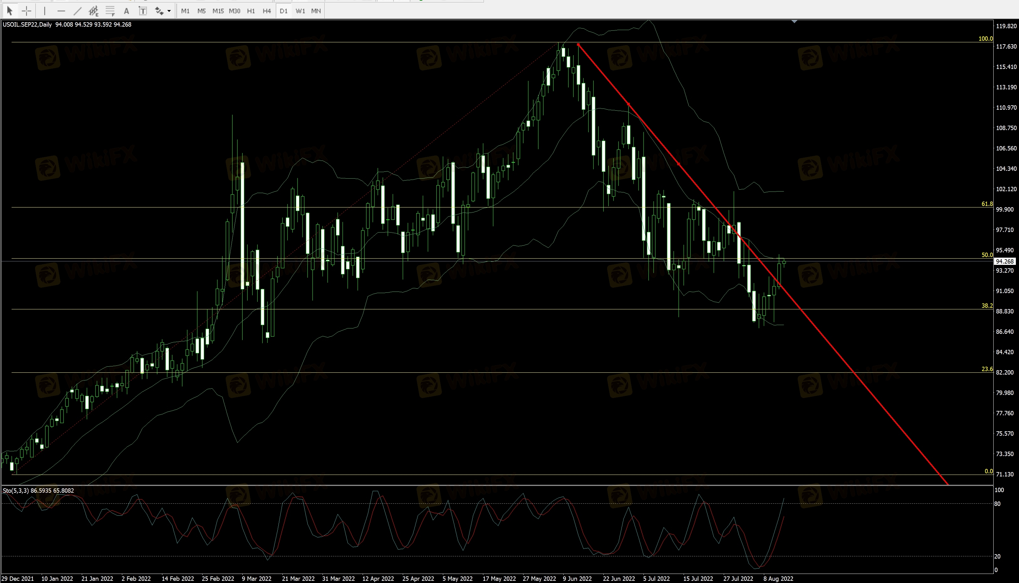 综上所述,下周二API出来前都暂时维持多头思路,上看97。短线低多为主,但是止损偏大。